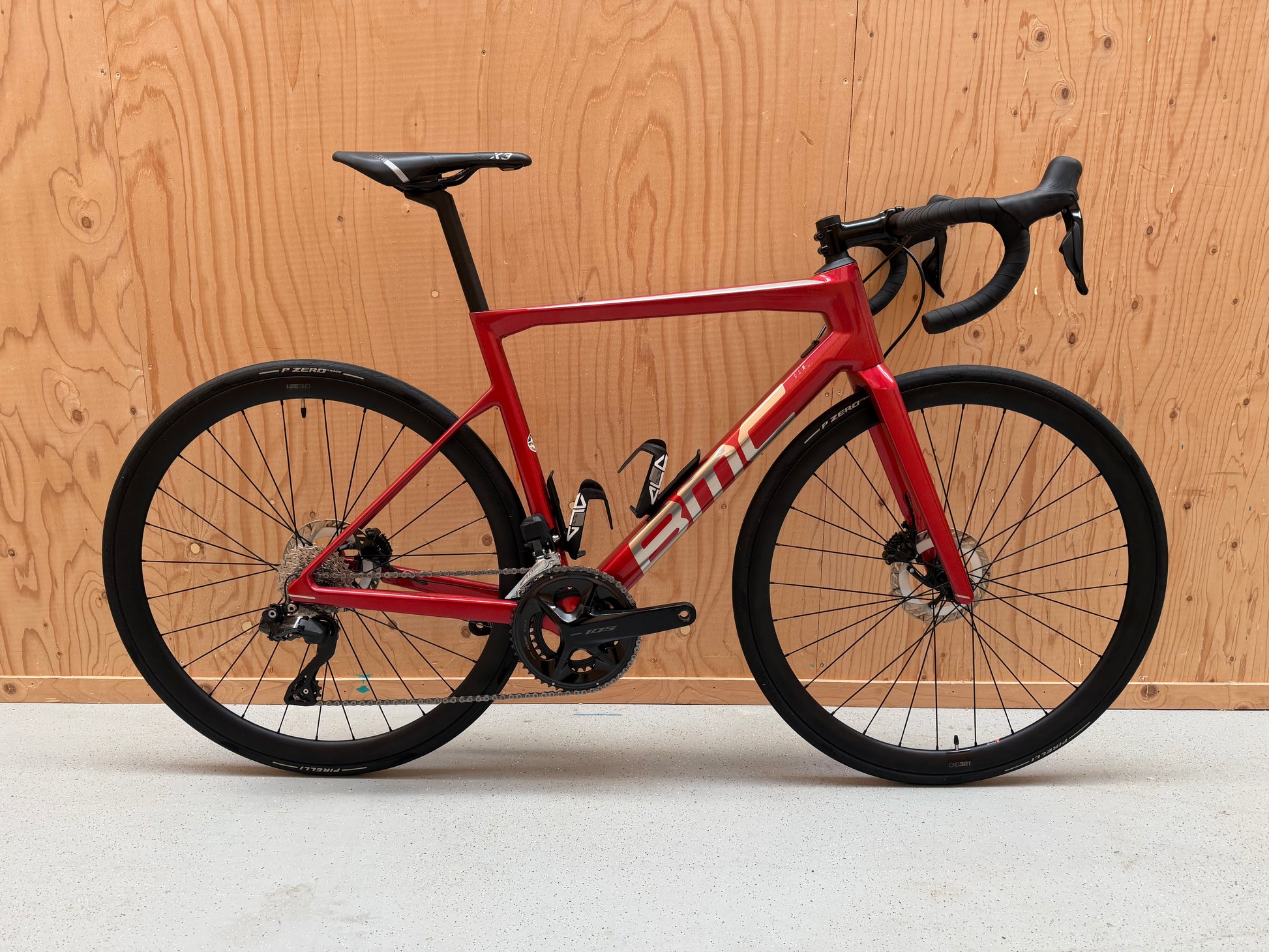 Voorzien van de BMC CRD 321 carbon wielset met Pirelli P Zero Race 28 mm banden.