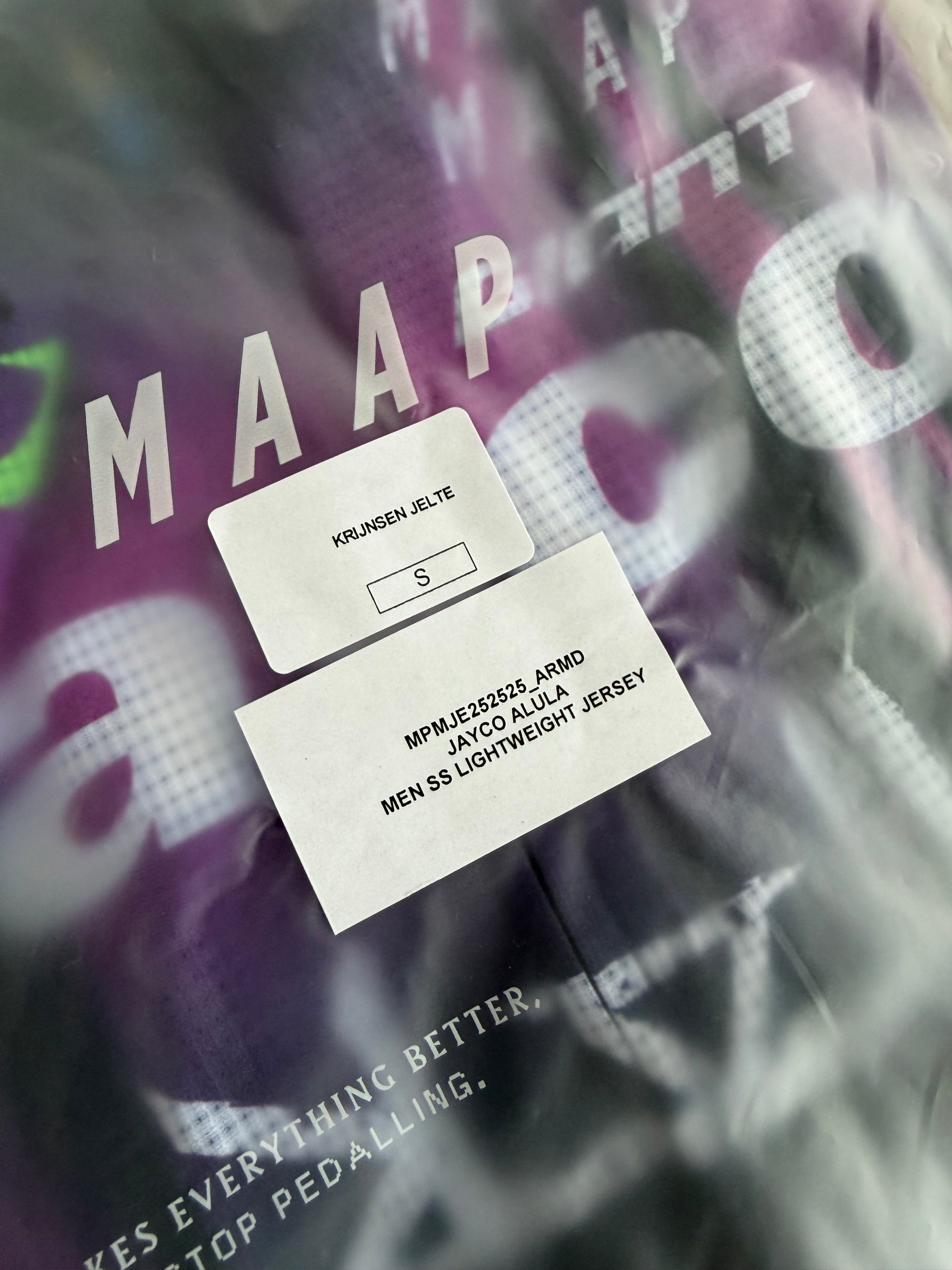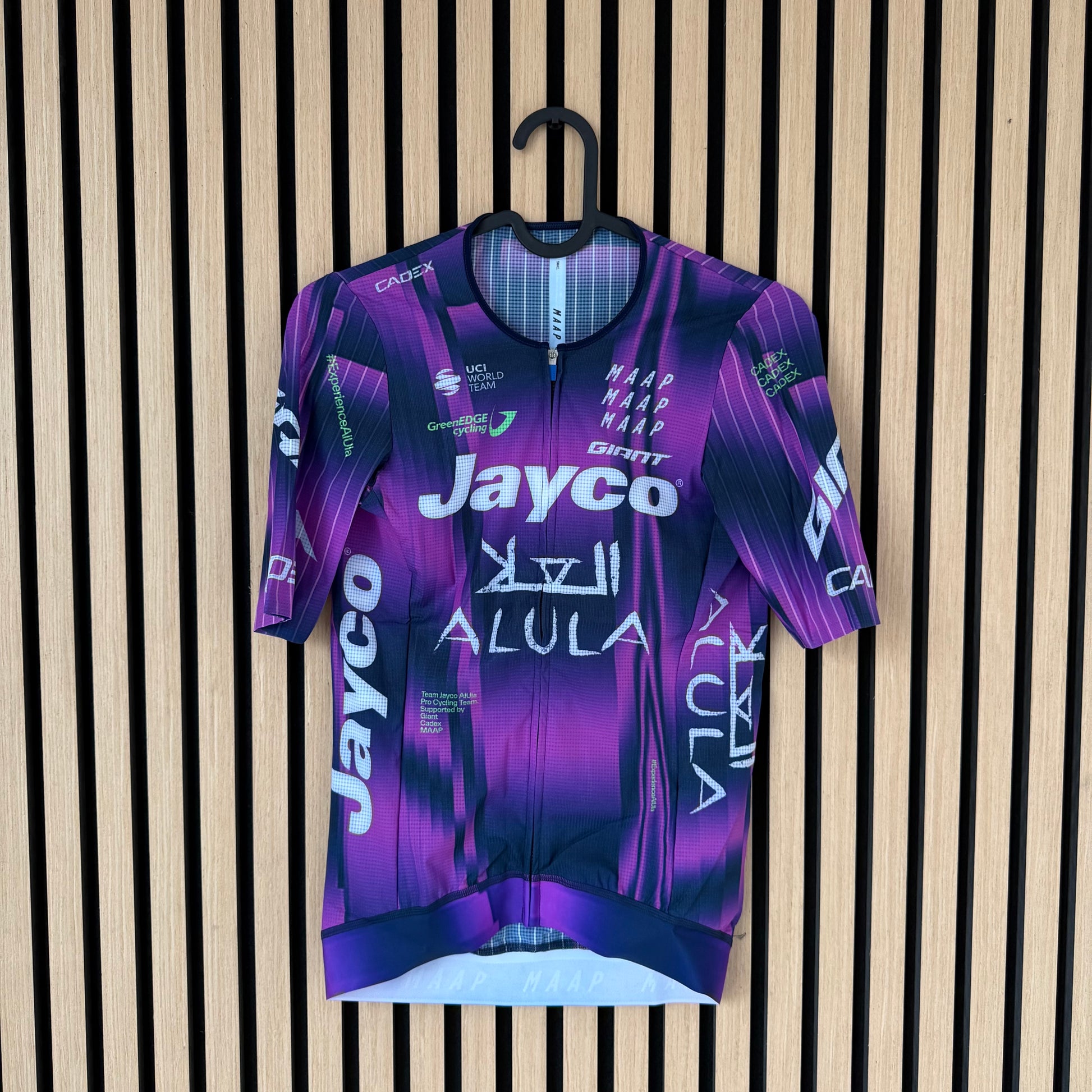 Dit MAAP CC fietsshirt is afkomstig van het World Tour Team Jayco Alula en komt rechtstreeks uit de ploeg. Het gaat om de officiële teamkleding voor 2025, nieuw in de originele verpakking en normaal gesproken niet verkrijgbaar voor consumenten.