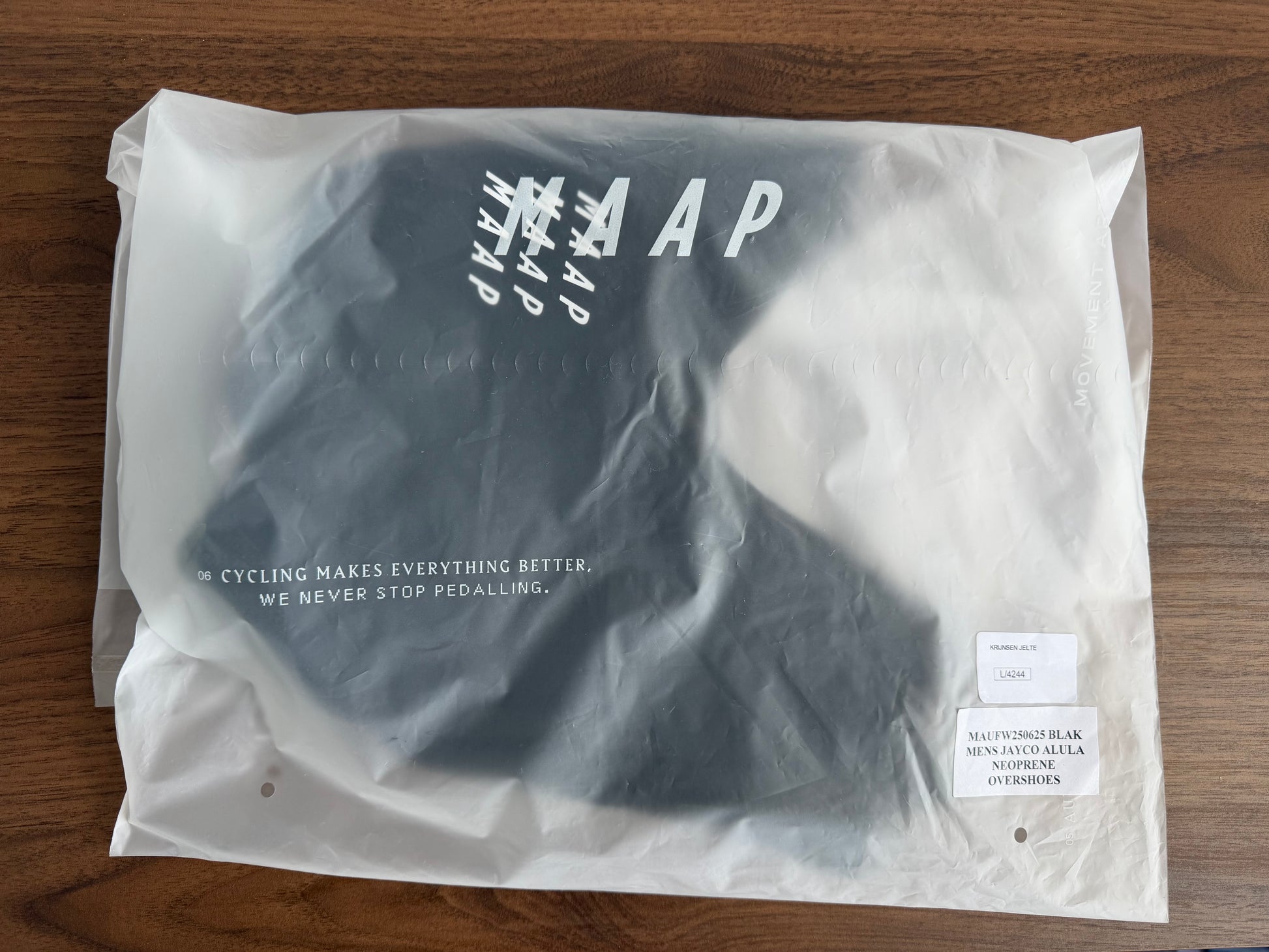 Deze Maap neopreen overschoenen maken deel uit van de officiële uitrusting van World Tour Team Jayco Alula. Het gaat om echt ploegmateriaal, nieuw en ongebruikt, normaal niet beschikbaar voor consumenten. De overschoenen zijn gemaakt van hoogwaardig neopreen dat uitstekend beschermt tegen regen en kou en sluiten strak aan rond schoen en enkel zoals de renners ze zelf gebruiken tijdens natte koersdagen en winterse trainingsritten. De afwerking is stevig en voelt direct professioneler dan reguliere consumentenmodellen.